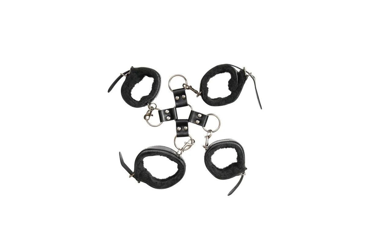 Get your partner all tied up so you can please them exactly how you want! The set includes two adjustable handcuffs and two adjustable leg cuffs, all faux fur-lined with a self-release for safe and comfortable play, plus a hog tie so you can keep wrists and ankles restrained all at once.