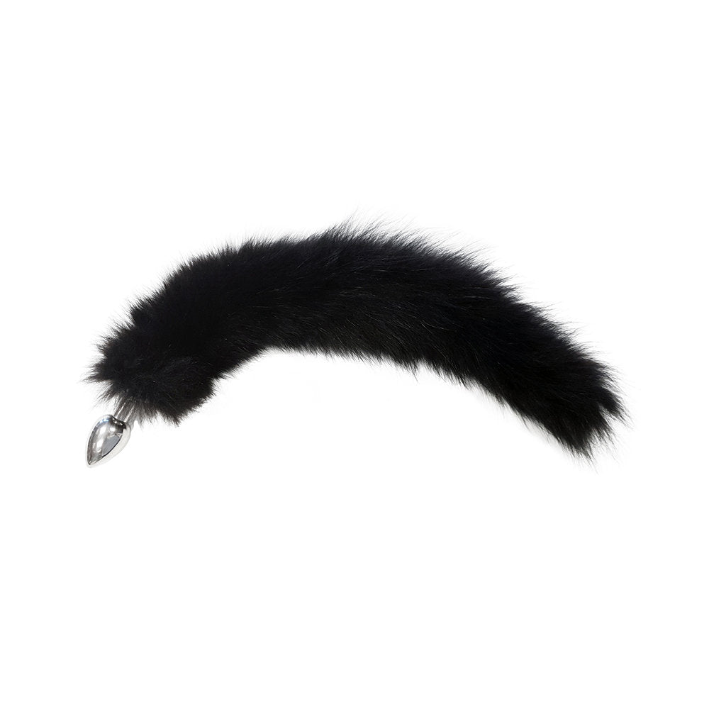 Medium sized stainless steel butt plug with real fur tail. 17”