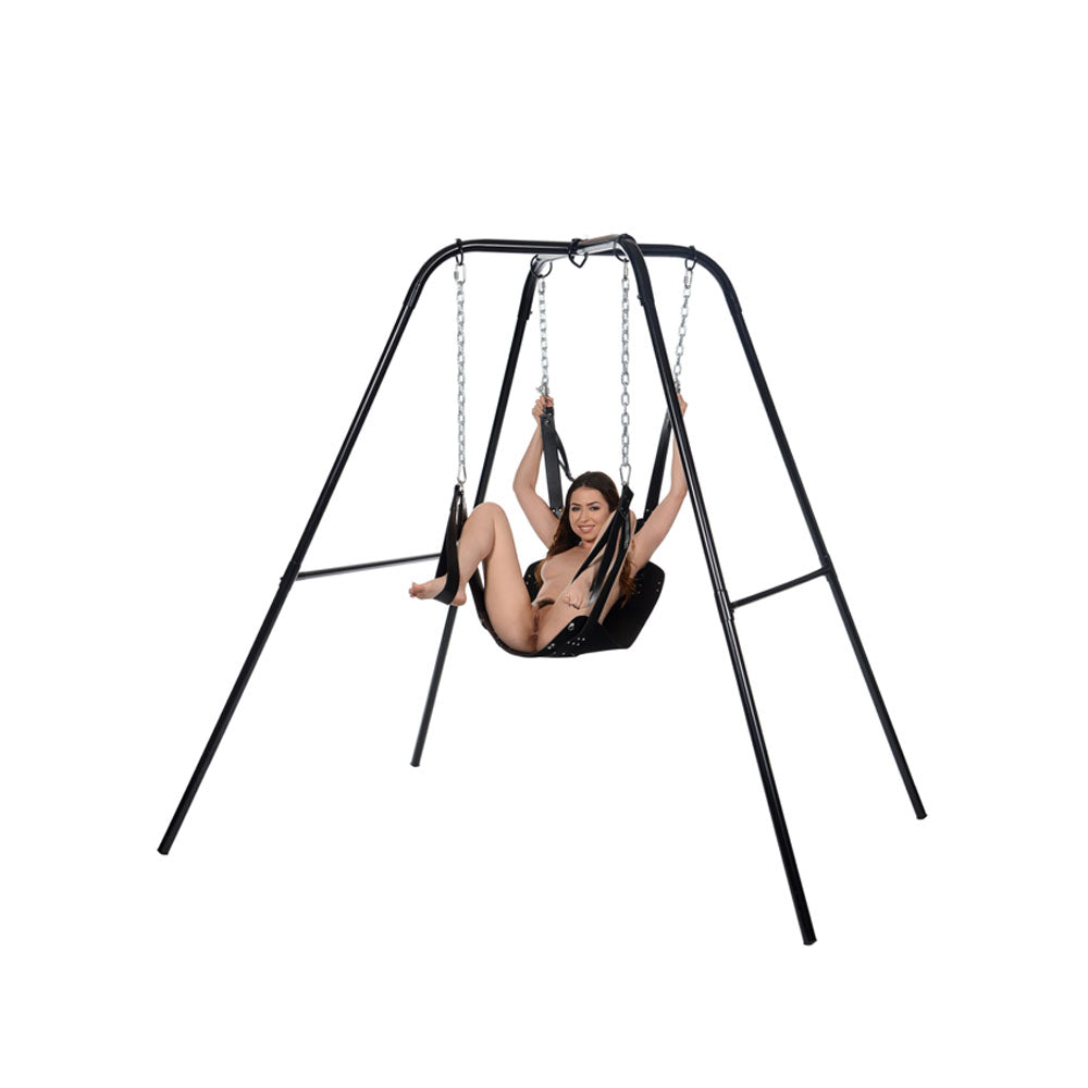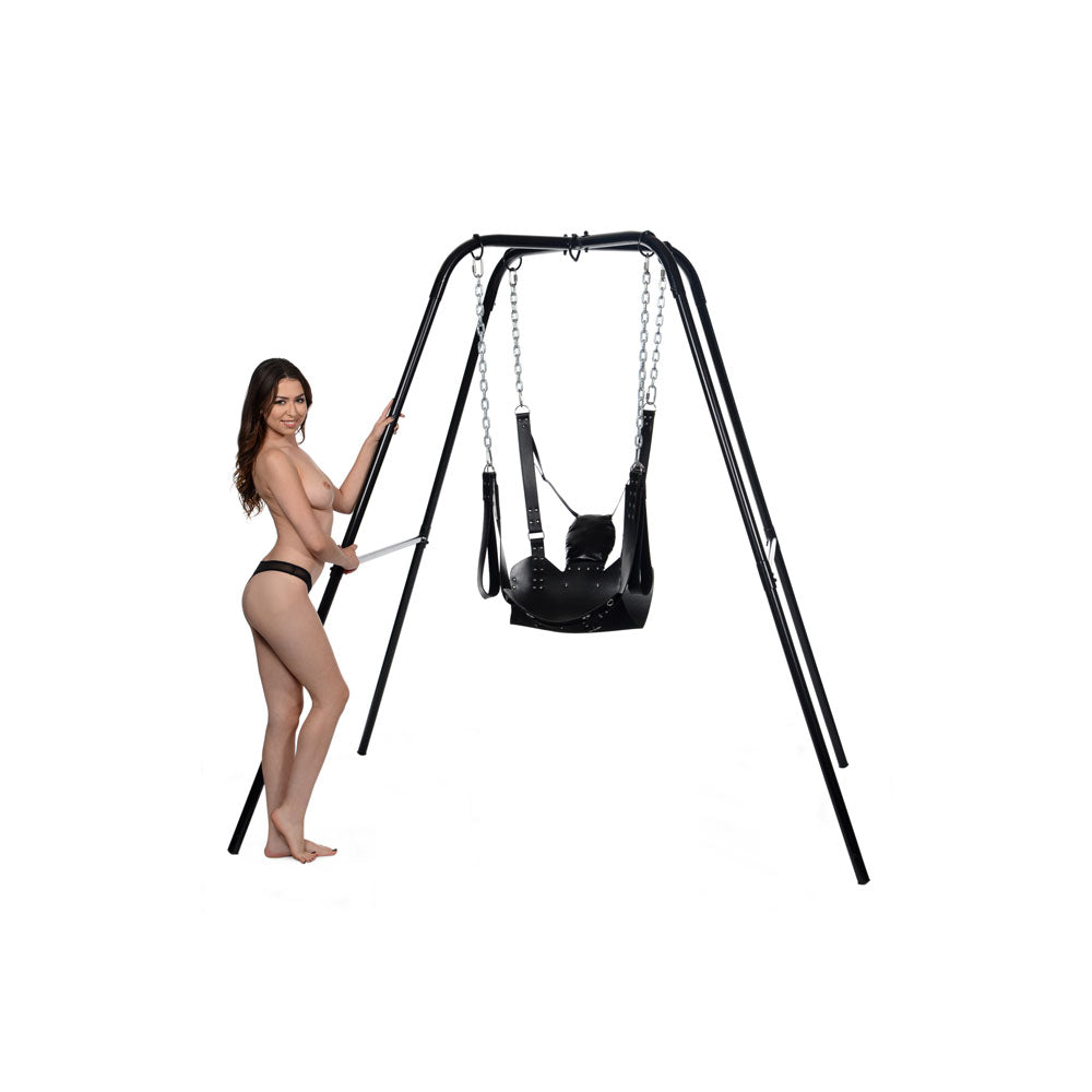 This exquisite bondage sling allows you to access your partner while they are suspended in the air, spread open and waiting for you. The leather material is heavy, while retaining a price point that is accessible for more bondage enthusiasts! The sling allows them to lie back and place their feet in the included stirrups. The padded pillow will cradle their head, with adjustable straps at the head that allows you to raise or lower their upper bodies. The stirrups are detachable with strong metal carabineers, and the advanced material reduces some of the weight for easier transport.