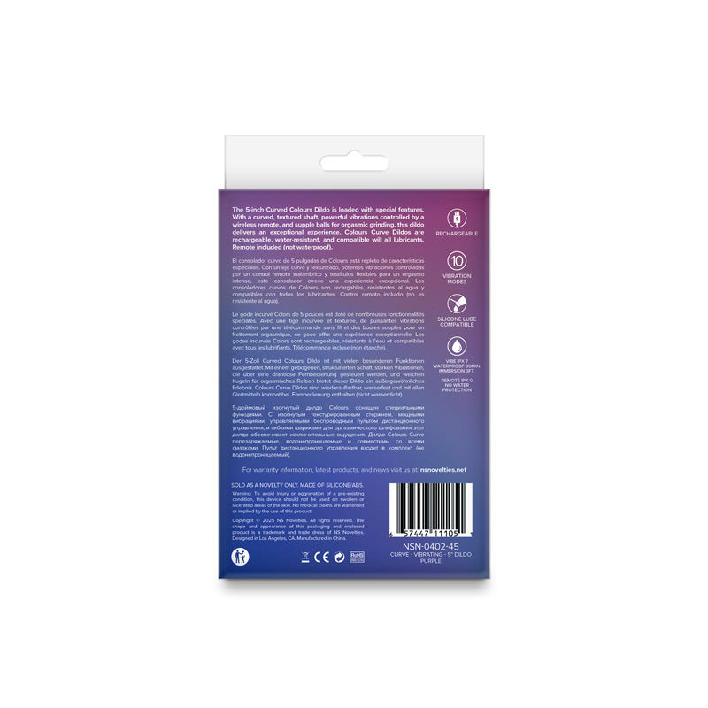 Colours - Curve - Vibrating w/ remote - 5" Dildo - Purple