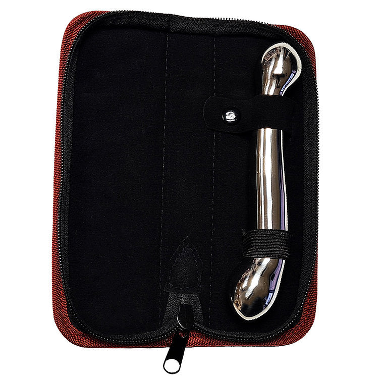 Stainless Steel Anal or Vaginal Dildo is specifically shaped for both female G-Spot and male prostate stimulation. One side of the shaft contains ridges for added stimulation. 7 inches in length.