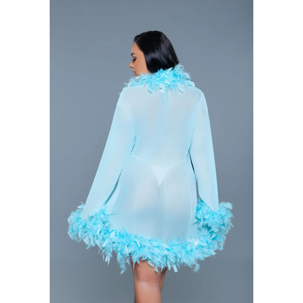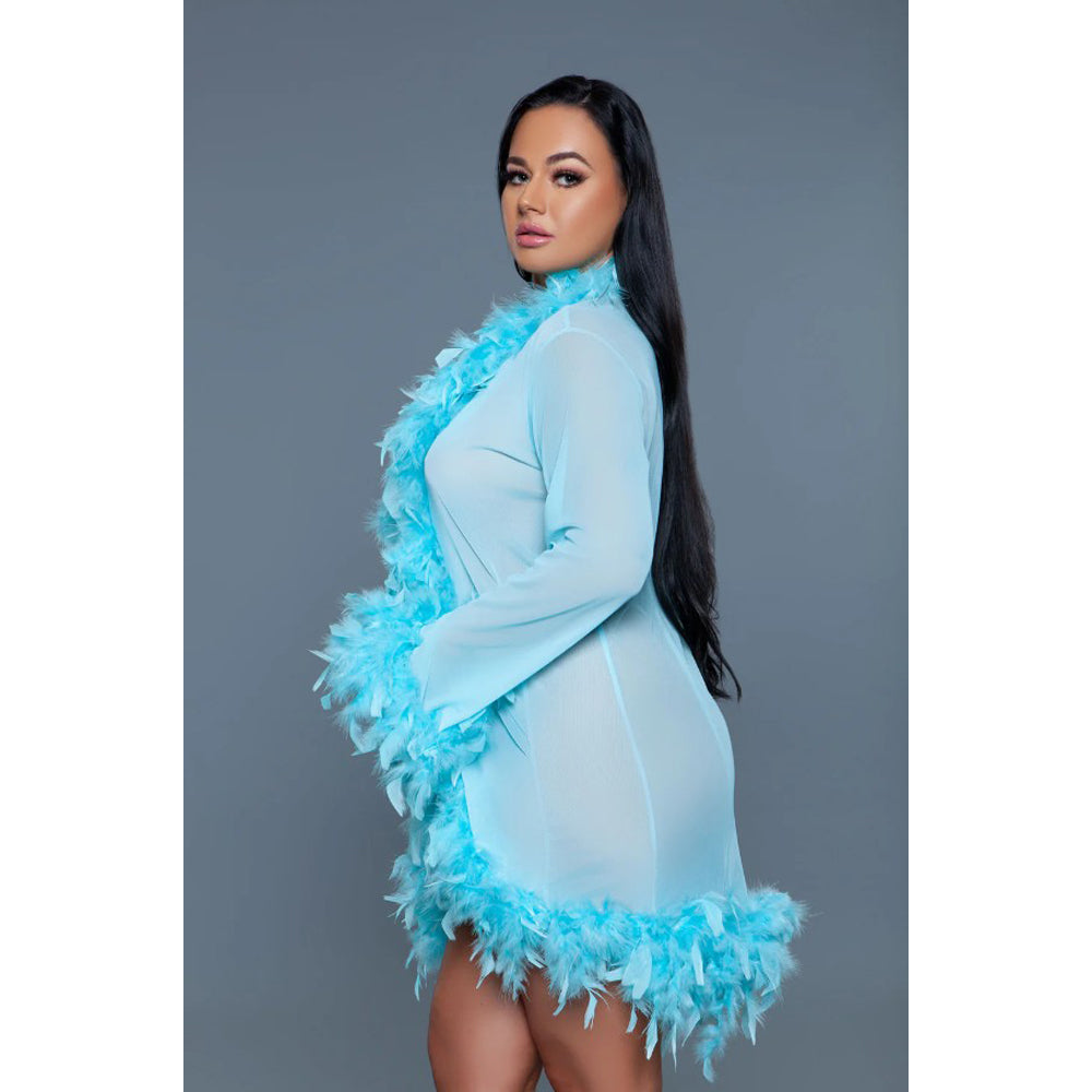 Lux short chiffon robe with feather boa trim is a playful yet elegant garment that combines the airy lightness of chiffon with the whimsical allure of a feather boa trim. This robe is designed for those who love to add a touch of glamour and fun to their loungewear.