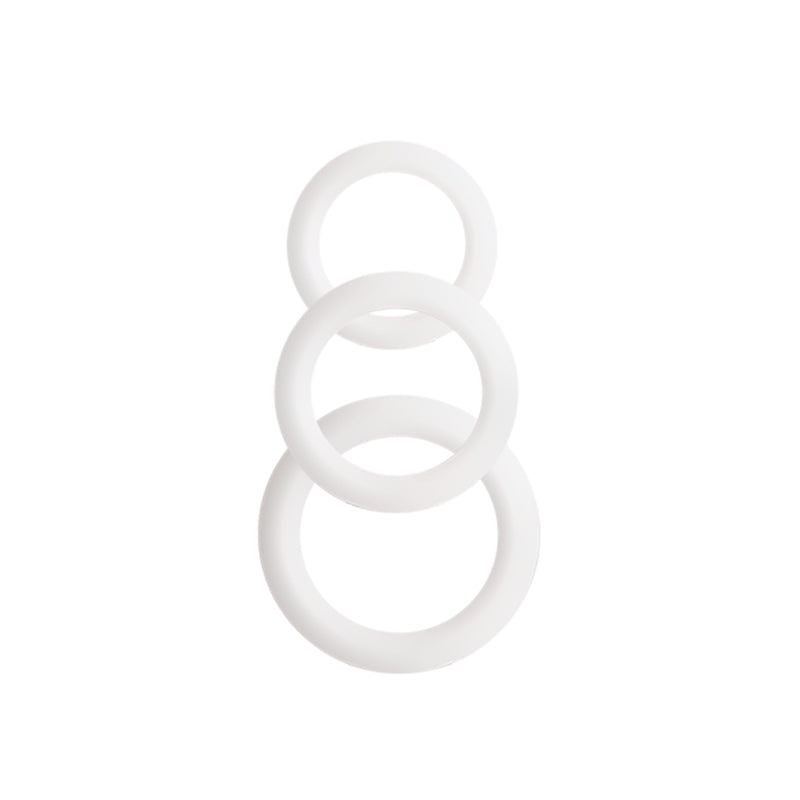 These cockrings can be used together or separately: at the base of the genitals, around the testicles or around the penis.