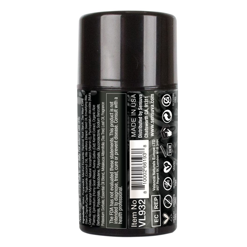 Water, Propanediol, Manihot Esculenta (Tapioca) Root Starch, Zea Mays (Corn) Starch Caprylic/Capric Triglyceride (Coconut Oil), Vitis vinifera (Grape) Seed Oil, Emulsifying Wax, Cetyl Alcohol, Isopropyl Myristate, Natural Tocopherol (Vitamin E), Ptychopetalum olacoides (Muira Puama), Epimedium (Horny Goat Weed), Avena Sativa (Oat) Kernel Extract, Organic Aloe Barbadensis, Polyacrylate, Polyisobutene, Polysorbate, Gluconolactone, Sodium Benzoate, Potassium Sorbate, Essential Oil Blend, Melaleuca Alternifolia (Tea Tree) Leaf Oil, Fragrance