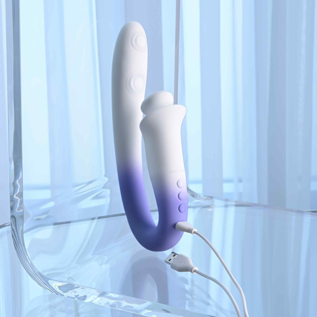 This extraordinary toy features two unique experiences in one firm, curvy shaft. A floppy and flexible flap at the end of the smaller shaft cradles a spring-loaded oblong stimulator that bobs and springs in delicious ways, especially with the powerful motor behind it. But that’s only half the story. The main shaft not only buzzes along with its own motor, but it also features two tapping points – one at the head and one mid-shaft to create an internal sensation that has to be experienced to be believed! Grip the curved handle base for easy ergonomic control and operate each motor separately, even under water as it’s completely submersible.