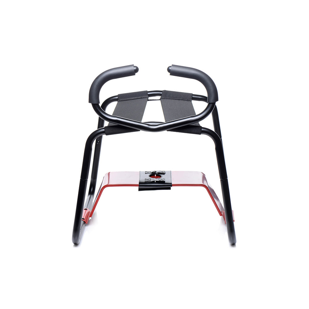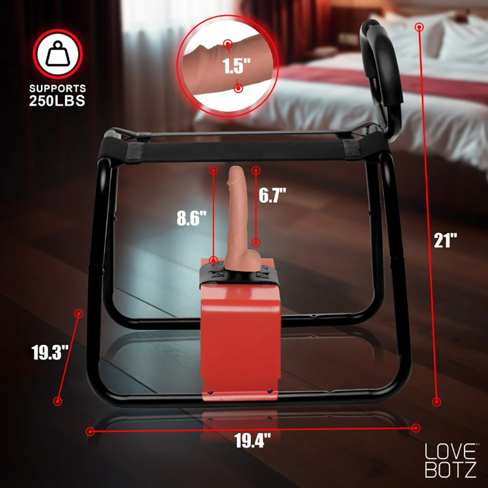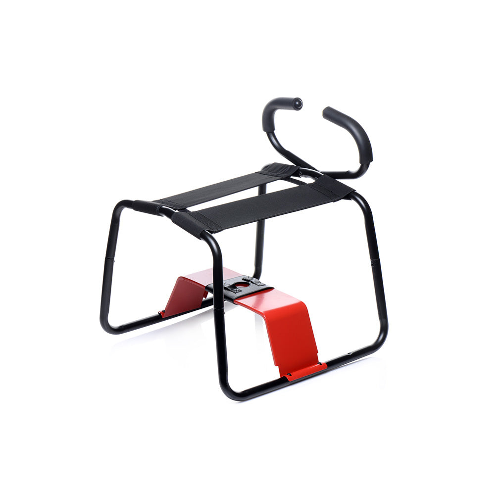 Key Features: Durable Steel Frame: The strong frame is built to last so you can enjoy spirited and enthusiastic riding, bouncing, and banging! Use it with the dildo or remove the dildo and enjoy bouncing on top of your partner! Extra Stable: The handles provide extra stability as you try out a variety of poses and angles! Premium Silicone Dildo: Enjoy solo rides with this vibrating, thrusting dildo! Enjoy 6 thrusting modes and 8 vibrating modes! Made out of premium silicone, it is body-safe to use with water-based lubricants. Remote Control Ecstasy: Use the battery-operated remote to change settings! Give it to your partner or use it on yourself! Self-Satisfaction: This bench and dildo combo is the perfect combination for self-directed solo play where you go for as long as you want and enjoy exactly what you like! Reach new heights of orgasmic ecstasy with the Bangin' Bench! Constructed with a durable steel frame, this bench is designed for spirited riding and enthusiastic bouncing. The extra-stable handles offer secure support, letting you try a variety of angles and poses with or without a partner. Featuring a premium silicone dildo with 6 thrusting and 8 vibrating modes, the bench ensures body-safe, sensational pleasure that hits that spot perfectly! The battery-operated remote control makes switching settings a breeze, whether you're alone riding hands-free or if you hand it to a partner so they can change the settings for you. Detach the dildo for partner play or enjoy extended solo sessions. Elevate your self-directed play with this unbeatable combination of stability and pleasure. Measurements: Bench: 19.4 inches Length x 19.3 inches Width x 21 inches Height (15 inches Height without handle bar) Straps are 4 inches wide Dildo bar is 5 inches wide & dildo harness diameter is 1.5 inches Dildo: 8.6 inches overall length, 6.7 inches insertable length, 1.5 inches widest insertable diameter. Thrust length is 0.79 inches Max. weight limit: 250lbs Materials: Bench: Metal, elastic, vegan leather, Velcro Dildo: Silicone, plastic Color: Black, red Note: Remote distance of up to 26 feet, requires one CR2032 battery (included). Rated IPX6 waterproof and can handle being taken in the shower, but not submerged under water.