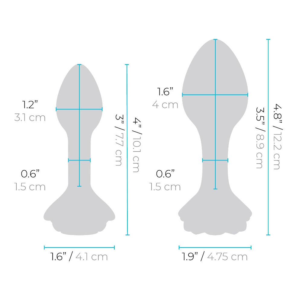 Romance your booty with the Pink Roses Training Set, a dynamic duo of sleek glass butt plugs in a dusty pink hue with rose detailed bases. Expertly crafted with slender necks that graduate to